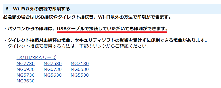 6. Wi-Fi以外の接続で印刷する』を試すことに。