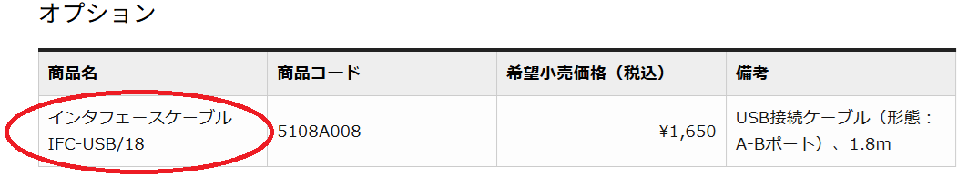 インターフェースケーブル IFC-USB/18