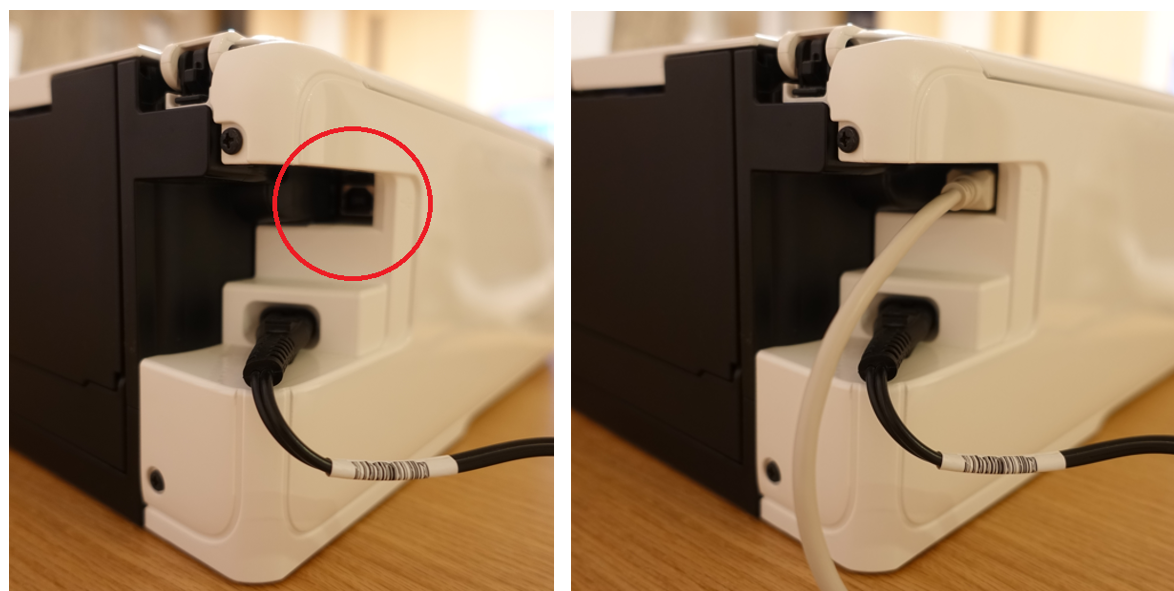 USBケーブルを挿す場所は、どの機種も大体背面の電源コードの上あたりにあります。