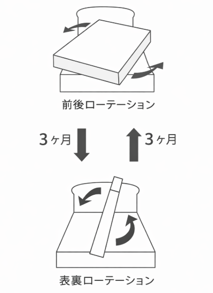 マットレスは、長く使うためには3か月おきくらいに前後/裏表でひっくり返すとへたり防止になってよいとのことです!